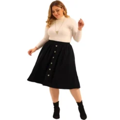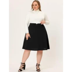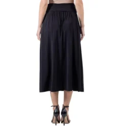 Agnes Orinda Women’s Plus Size Pleated Stretched High Waist Premium Metallic Shiny Midi Skirts