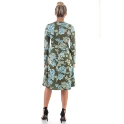 A perfectly proper skirt that is comfortable and elegant, made with a classic green and blue floral print. Featuring a comfortable elastic waistband, roomy A line cut, and a knee length hemline. Easily style this skirt as part of a professional work look with heels or make it casual with sandals. Made from a comfortable stretch material in a polyester spandex blend.