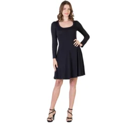 This classic A-line shape will always be in style! The sleek look has a rounded scoop neckline and long fitted sleeves. This cute and comfortable long sleeve mini dress is sure to become your new favorite outfit.