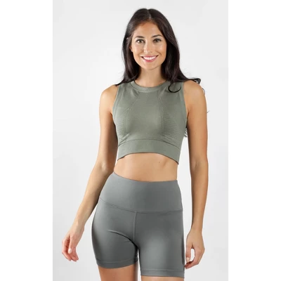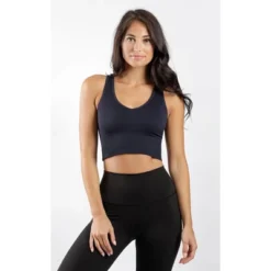 Express yourself in this versatile tank top from 90 Degree by Reflex while working out. It’s the perfect staple for women of all bust sizes. This is the top for you if you want extra support, definition, or more coverage throughout the day. Made of seamless fabric consisting of 92% Nylon and 8% Spandex, this cropped tank top makes you feel confident without worrying about this top digging at your sides. It is crafted with a chic ribbed design to help level up your outfits. Pair with our 90 Degree sports bras and biker shorts to complete the look.