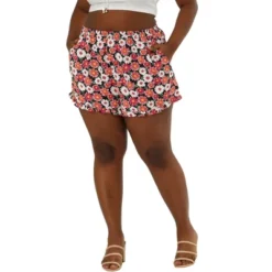 Agnes Orinda Women’s Plus Summer Floral Elastic Waist Casual Shorts