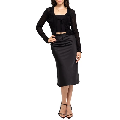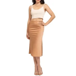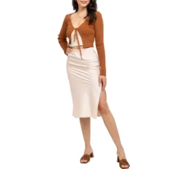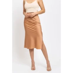 Indulge in the luxurious feel of our August Sky Women’s Side Slit Satin Skirt, designed to add a touch of elegance and sophistication to any outfit. With its sleek and simple design, this single-color skirt is a versatile piece that can be dressed up or down. The side slits add a flirty and playful touch, while the elastic waistband ensures a comfortable and secure fit. Perfect for any occasion, this satin skirt is a must-have addition to your wardrobe. Whether you’re going to work or out for a night on the town, this skirt is sure to turn heads and make you feel like a true fashionista.
