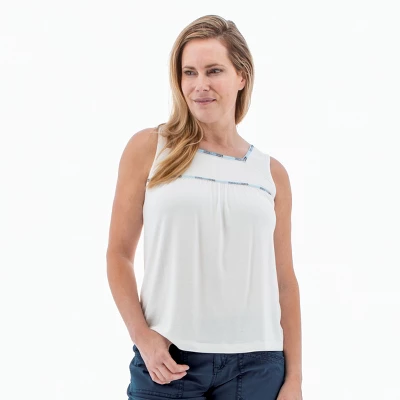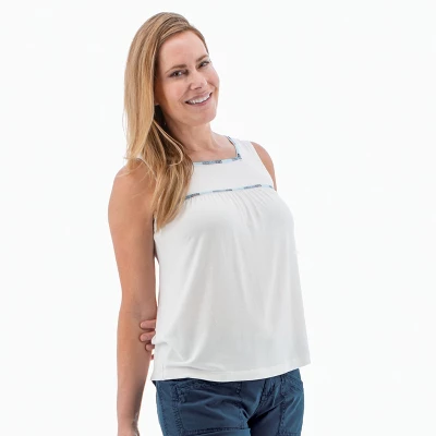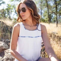 The Capella Tank Top is fun, feminine, and flattering – and just what you’ve been looking for! Made from sustainable TENCELâ„¢ Modal and a touch of spandex, the single jersey fabric of this tank is light, silky, and perfectly drapable. TENCELâ„¢ Modal mimics the feel of silk but without the hassle. This top is easy to maintain and machine wash-friendly. The square neckline makes this style unique, as does the colorful embroidery that borders the neck and bust. We love how the ruching detail along the front yoke creates a flowy bodice. Without squeezing you tight or showing off anything you don’t want, this top still flatters the figure. Pair with your favorite shorts, and let the comfort of the tank sail you away.