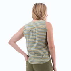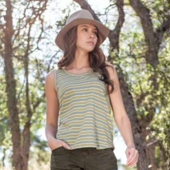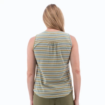 The Fair Trade Certifiedâ„¢ Redford Tank Top is all about summer with a cute striped design, flattering shape, incredible comfort, and a small ecological footprint. Recycled cotton and recycled polyester pair to reduce resources by repurposing fabric scraps, plastics, and other materials into this soft, comfortable tank. Guilt-free fashion! The striped pattern, which alternates in a unique and colorful three-by-two rhythm, brings brightness to the style. Flattering features include a scoop neck, shirttail hemline, and ruching on the back yoke. From casual outings to polished work days, this tank top will be there for you!