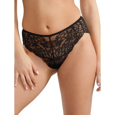 - Modest rise hi-cut hipster with patterned lace