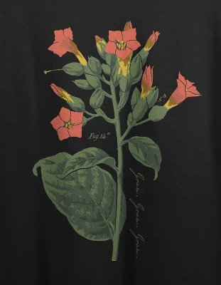 - CUSTOM DESIGN: An image of a cigar plant with colorful red flowers decorates the front of this graphic tee. Fans of the plant will love to celebrate their favorite flowers with this fun custom design.