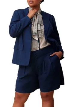 ELOQUII Women’s Plus Size High Waisted Linen Blend Short