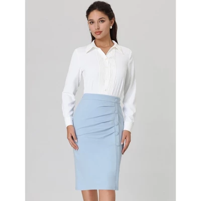 - Keep your look professional and stylish in this pencil skirt from Hobemty, featuring a high waist, pleated front, and button decor.