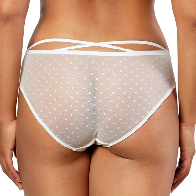 This highly-requested new style pairs with our best selling Mia Dot Bralette and Mia Lace Bralette & Chemise. With medium coverage and minimal leg ride-up, our Mia Hipster has dot mesh at the front and back, lace at the side and mesh at the center front.