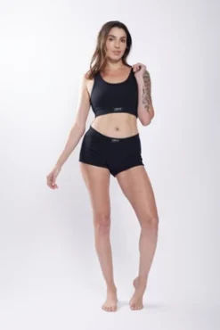 - Mid rise fit, 2.5″ inseam