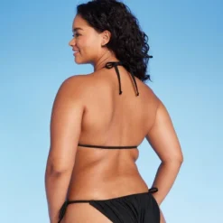 Crochet triangle bikini top from Wild Fableā¢Ā in a solid hue. Made from soft fabric with spandex and full lining for stretchy comfort in and out of the water. Removable cups offer customizable coverage. Front tie with tassels adds a chic accent. Adjustable straps and behind-neck tie closure provide the perfect stay-put fit.