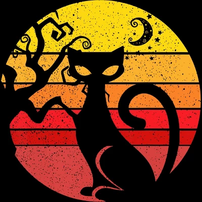 - This purr-fect Halloween design featured the silhoutte of a scary black cat next to a tree surrounded by a vintage sun.