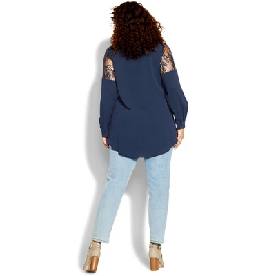 Keep your wardrobe up to date with the sophisticated Lacey Hi Lo Shirt. Chic and oh-so-fabulous, this top boasts lace overlay to the shoulders, long sleeves with button cuffs and classic collar for a timeless style.Bold and fiercely fashionable, no one does plus size fashion like City Chic. Loved around the globe for its diverse range of fashion-forward styles for any occasion. From show-stopping evening gowns to workwear and casualwear, City Chic will take your style to bold new heights. Available in sizes 14-32.
