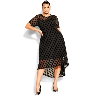 Turn heads in classic style with the Spot Flock Dress! Combining a curved neckline with elbow sleevesBold and fiercely fashionable, no one does plus size fashion like City Chic. Loved around the globe for its diverse range of fashion-forward styles for any occasion. From show-stopping evening gowns to workwear and casualwear, City Chic will take your style to bold new heights. Available in sizes 14-32.